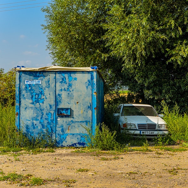 On from there I drove up to the border into Norfolk and found what I thought was ideal border country with the Little Ouse River as a slow moving dike. I turned off to park and found this weathered blue container and an abandoned Mercedes. Hopefully next week I can get out again and look for more photographs.